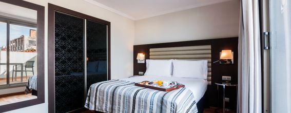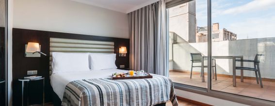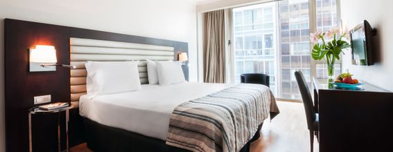 Este hotel está situado entre el emblemático Paseo de Gracia y la elegante Rambla de Catalunya, que le conducirá hasta el mismo centro de Barcelona. El Exe Cristal Palace está en la ruta modernista de la ciudad, que muestra algunos de los mejores trabajos de arquitectos como Antoni Gaudí. Dos de sus obras más representativas, La Pedrera y la Casa Batlló, están a muy poca distancia del hotel, en Paseo de Gracia. El corazón de la ciudad, la Plaza Catalunya y La Rambla, están a un corto paseo, igual que el fascinante barrio gótico. Hotel NO FUMADOR. *La cama de la hab. doble matrimonial pequeña es de 1.35